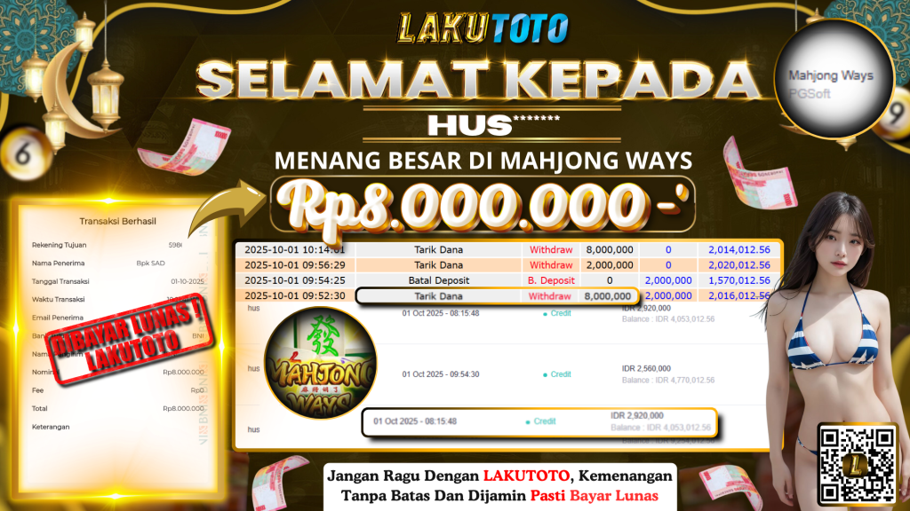 Kategori Bukti Bayar JP BUKTI BAYAR JP Penulis artikel Oleh Operator Lakutoto Tanggal artikel 1 Oktober 2025 MAHJONG WAYS RABU, 01 OKTOBER 2025 Rp8.000.000,- SELAMAT KEPADa PEMENANG, SALAM JP! ← BUKTI BAYAR JP → BUKTI BAYAR JP