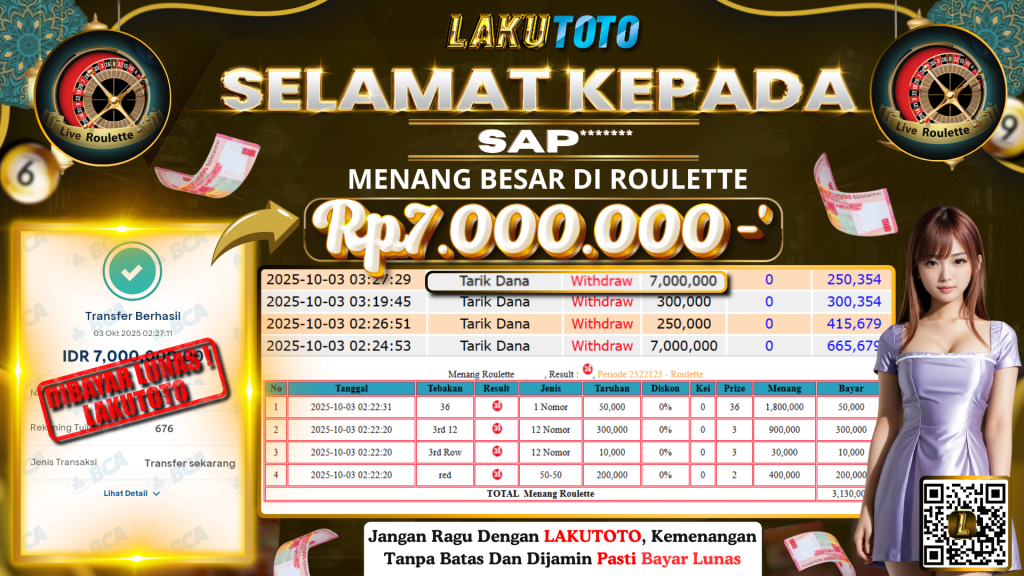 Kategori Bukti Bayar JP BUKTI BAYAR JP Penulis artikel Oleh Operator Lakutoto Tanggal artikel 3 Oktober 2025 ROULETTE JUMAT, 03 OKTOBER 2025 Rp7.000.000,- SELAMAT KEPADa PEMENANG, SALAM JP! ← PREDIKSI HONGKONG LOTTO