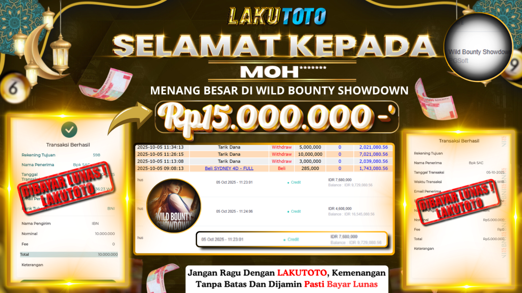 Kategori Bukti Bayar JP BUKTI BAYAR JP Penulis artikel Oleh Operator Lakutoto Tanggal artikel 5 Oktober 2025 WILD BOUNTY SHOWDOWN MINGGU, 05 OKTOBER 2025 Rp15.000.000,- SELAMAT KEPADa PEMENANG, SALAM JP! ← BUKTI BAYAR JP → BUKTI BAYAR JP