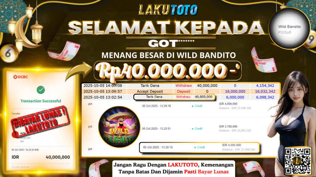 Kategori Bukti Bayar JP BUKTI BAYAR JP Penulis artikel Oleh Operator Lakutoto Tanggal artikel 5 Oktober 2025 WILD BANDITO MINGGU, 05 OKTOBER 2025 Rp40.000.000,- SELAMAT KEPADa PEMENANG, SALAM JP! ← BUKTI BAYAR JP