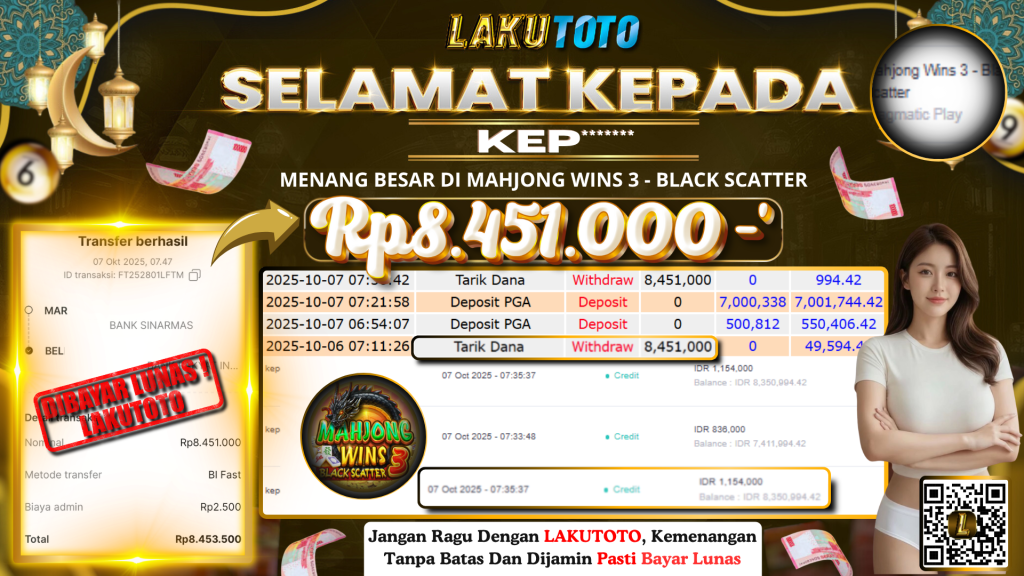 Kategori Bukti Bayar JP BUKTI BAYAR JP Penulis artikel Oleh Operator Lakutoto Tanggal artikel 7 Oktober 2025 MAHJONG WINS 3 – BLACK SCATTER SELASA, 07 OKTOBER 2025 Rp8.451.000,- SELAMAT KEPADa PEMENANG, SALAM JP! ← BUKTI BAYAR JP