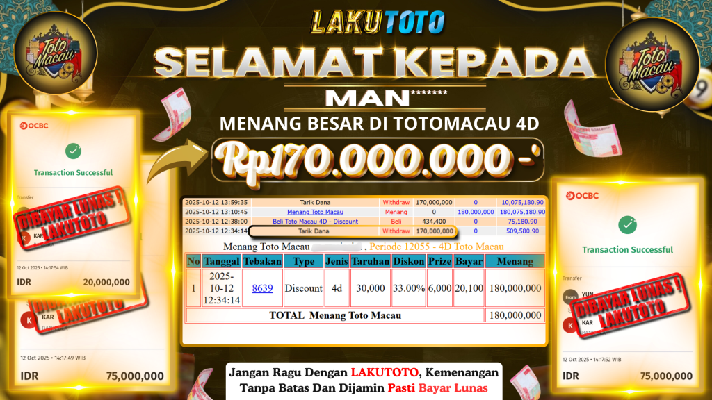 Kategori Bukti Bayar JP BUKTI BAYAR JP Penulis artikel Oleh Operator Lakutoto Tanggal artikel 12 Oktober 2025 TOTOMACAU 4D MINGGU, 12 OKTOBER 2025 Rp170.000.000,- SELAMAT KEPADa PEMENANG, SALAM JP! ← BUKTI BAYAR JP