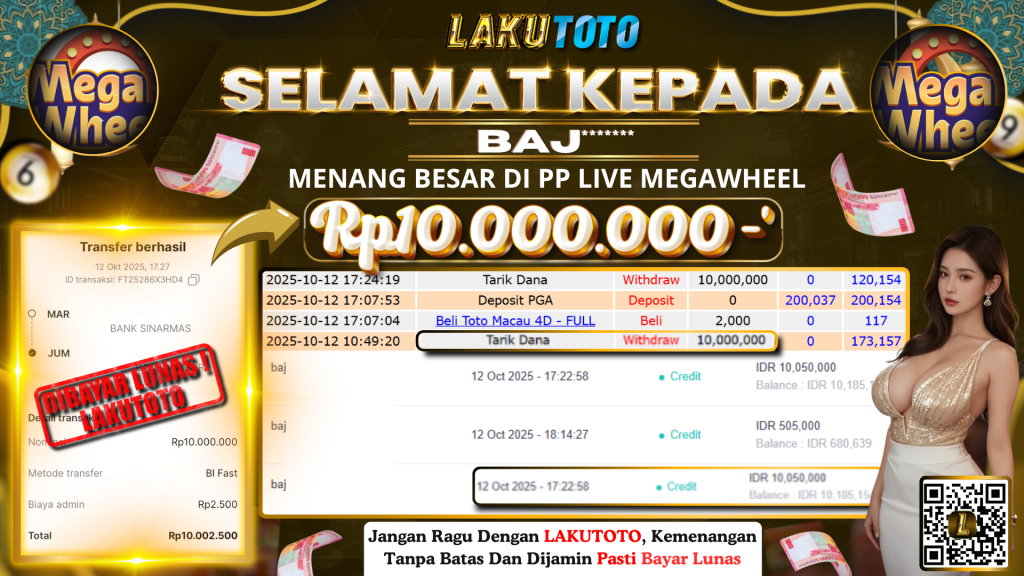 Kategori Bukti Bayar JP BUKTI BAYAR JP Penulis artikel Oleh Operator Lakutoto Tanggal artikel 12 Oktober 2025 PP LIVE MEGAWHEEL MINGGU, 12 OKTOBER 2025 Rp10.000.000,- SELAMAT KEPADa PEMENANG, SALAM JP! ← BUKTI BAYAR JP