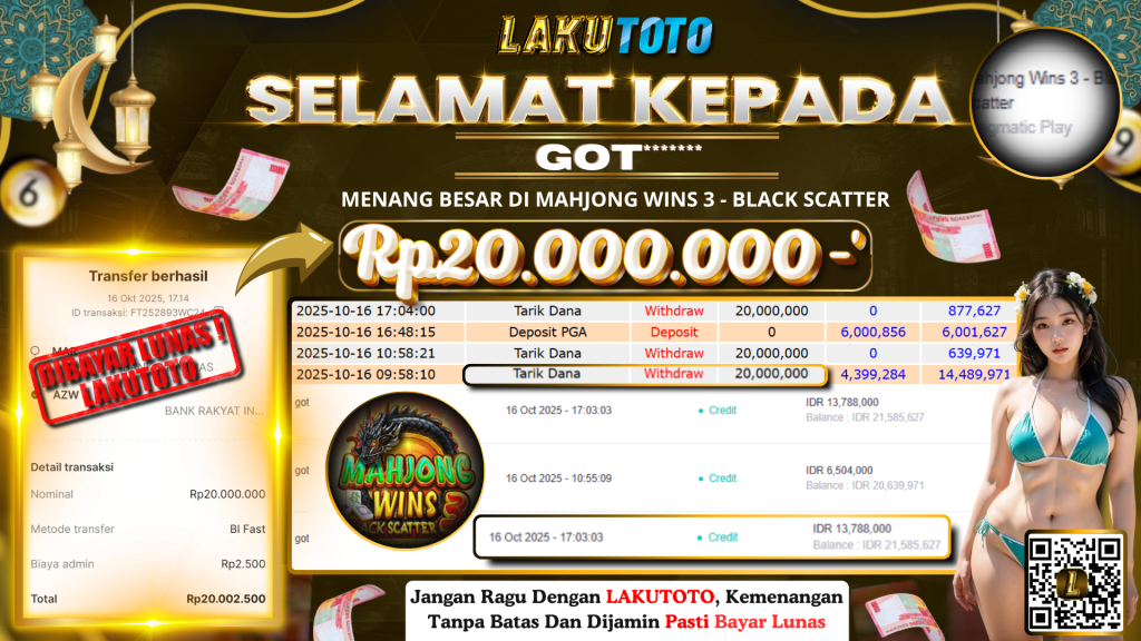 Kategori Bukti Bayar JP BUKTI BAYAR JP Penulis artikel Oleh Operator Lakutoto Tanggal artikel 16 Oktober 2025 MAHJONG WINS 3 – BLACK SCATTER kamis, 16 OKTOBER 2025 Rp20.000.000,- SELAMAT KEPADa PEMENANG, SALAM JP! ← BUKTI BAYAR JP → BUKTI BAYAR JP