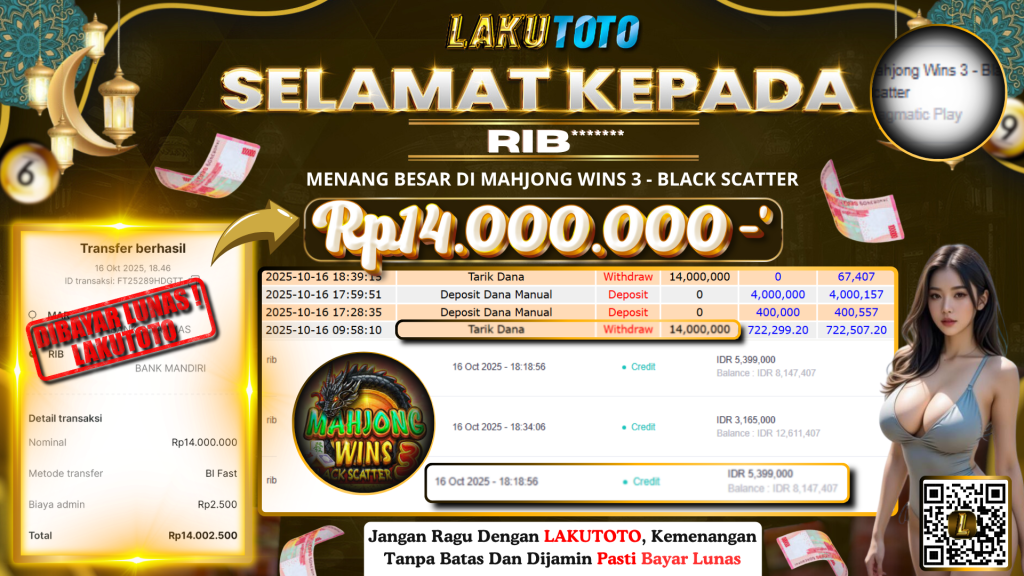 Kategori Bukti Bayar JP BUKTI BAYAR JP Penulis artikel Oleh Operator Lakutoto Tanggal artikel 16 Oktober 2025 MAHJONG WINS 3 – BLACK SCATTER kamis, 16 OKTOBER 2025 Rp14.000.000,- SELAMAT KEPADa PEMENANG, SALAM JP! ← BUKTI BAYAR JP → BUKTI BAYAR JP