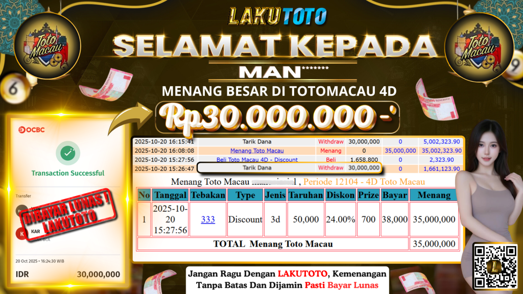 Kategori Bukti Bayar JP BUKTI BAYAR JP Penulis artikel Oleh Operator Lakutoto Tanggal artikel 20 Oktober 2025 TOTOMACAU 4D senin, 20 OKTOBER 2025 Rp30.000.000,- SELAMAT KEPADa PEMENANG, SALAM JP! ← BUKTI BAYAR JP → BUKTI BAYAR JP