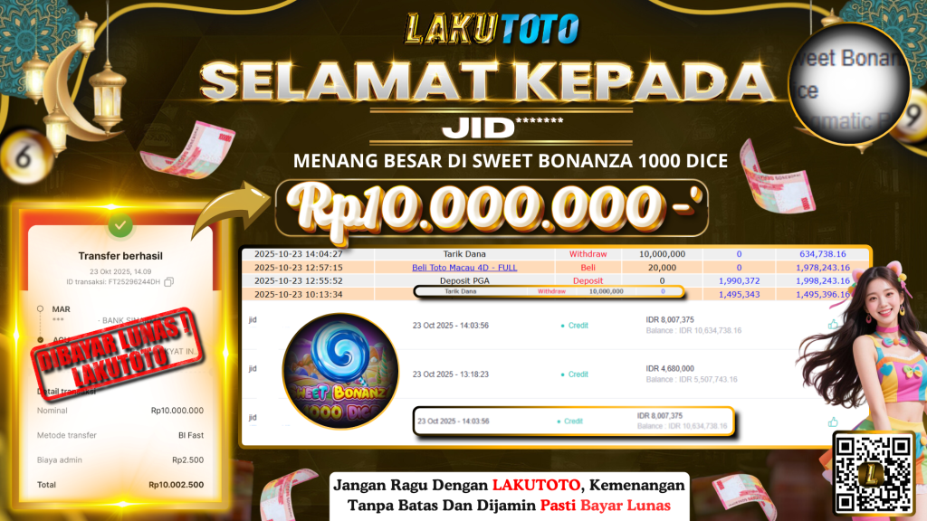 Kategori Bukti Bayar JP BUKTI BAYAR JP Penulis artikel Oleh Operator Lakutoto Tanggal artikel 23 Oktober 2025 SWEET BONANZA 1000 DICE kamis, 23 OKTOBER 2025 Rp10.000.000,- SELAMAT KEPADA PEMENANG, SALAM JP! ← BUKTI BAYAR JP → BUKTI BAYAR JP