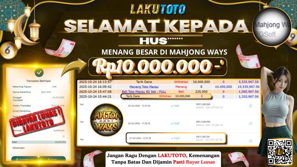 Kategori Bukti Bayar JP BUKTI BAYAR JP Penulis artikel Oleh Operator Lakutoto Tanggal artikel 24 Oktober 2025 MAHJONG WAYS JUMAT, 24 OKTOBER 2025 RP10.000.000,- SELAMAT KEPADa PEMENANG, SALAM JP! ← BUKTI BAYAR JP → BUKTI BAYAR JP