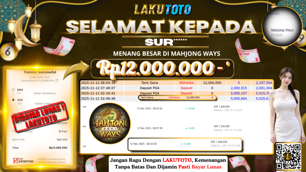 Kategori Bukti Bayar JP BUKTI BAYAR JP Penulis artikel Oleh Operator Lakutoto Tanggal artikel 12 November 2025 MAHJONG WAYS RABU,12 NOVEMBER 2025 Rp12.000.000,- SELAMAT KEPADa PEMENANG, SALAM JP ← BUKTI BAYAR JP → BUKTI BAYAR JP