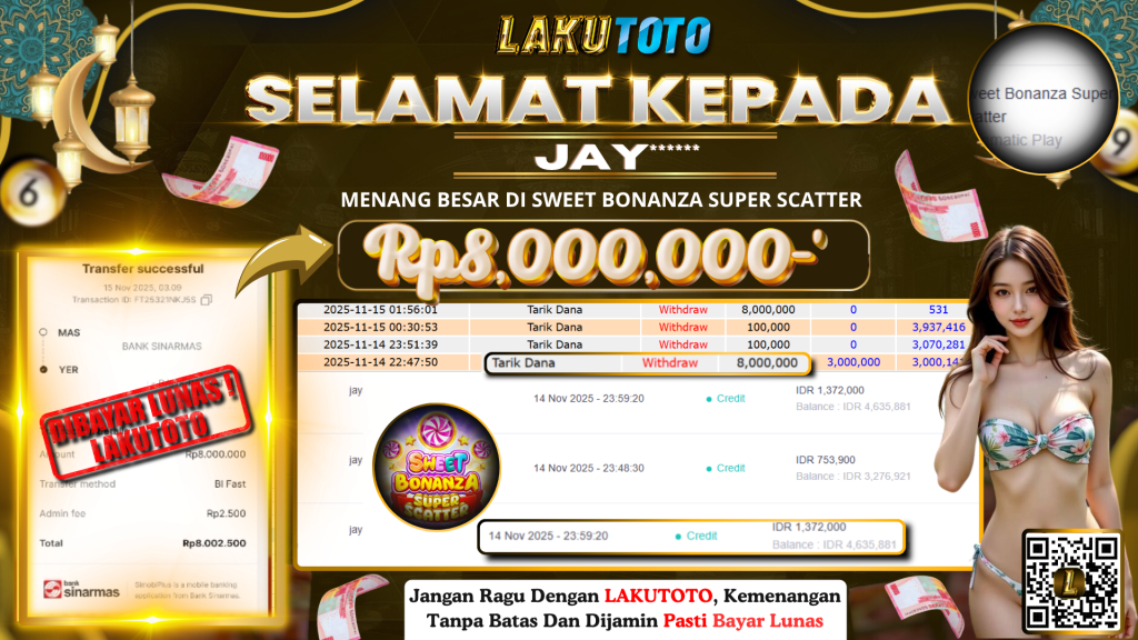 Kategori Bukti Bayar JP BUKTI BAYAR JP Penulis artikel Oleh Operator Lakutoto Tanggal artikel 15 November 2025 SWEET BONANZA SUPER SCATTER SABTU,15 NOVEMBER 2025 Rp.8.000.000,- SELAMAT KEPADa PEMENANG, SALAM JP ← BUKTI BAYAR JP