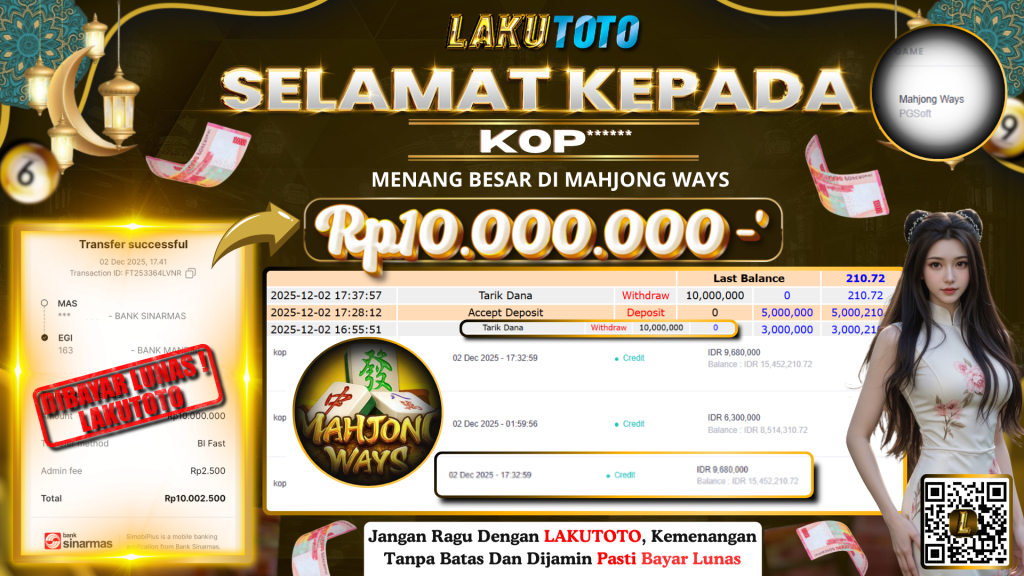 Kategori Bukti Bayar JP BUKTI BAYAR JP Penulis artikel Oleh Operator Lakutoto Tanggal artikel 2 Desember 2025 MAHJONG WAYS SELASA, 02 DESEMBER 2025 RP10.000.000,- SELAMAT KEPADa PEMENANG, SALAM JP ← BUKTI BAYAR JP → BUKTI BAYAR JP