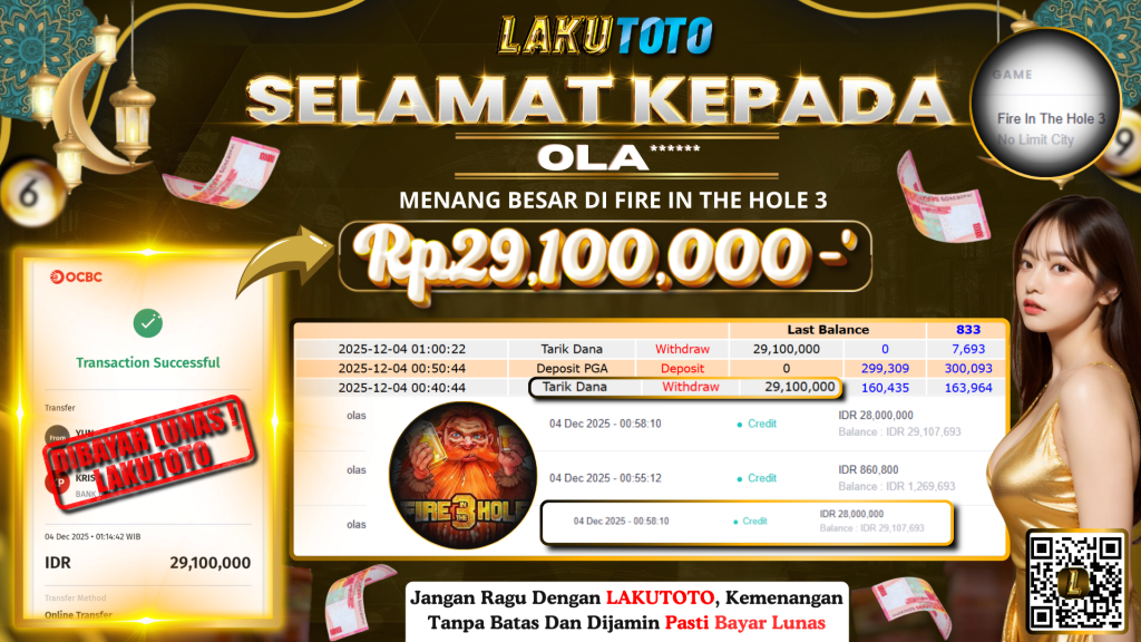 Kategori Bukti Bayar JP BUKTI BAYAR JP Penulis artikel Oleh Operator Lakutoto Tanggal artikel 4 Desember 2025 FIRE IN THE HOLE 3 KAMIS, 04 DESEMBER 2025 RP29.100.000,- SELAMAT KEPADa PEMENANG, SALAM JP ← PREDIKSI HONGKONG LOTTO → BUKTI BAYAR JP